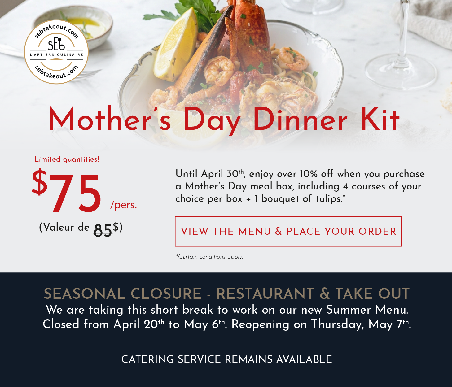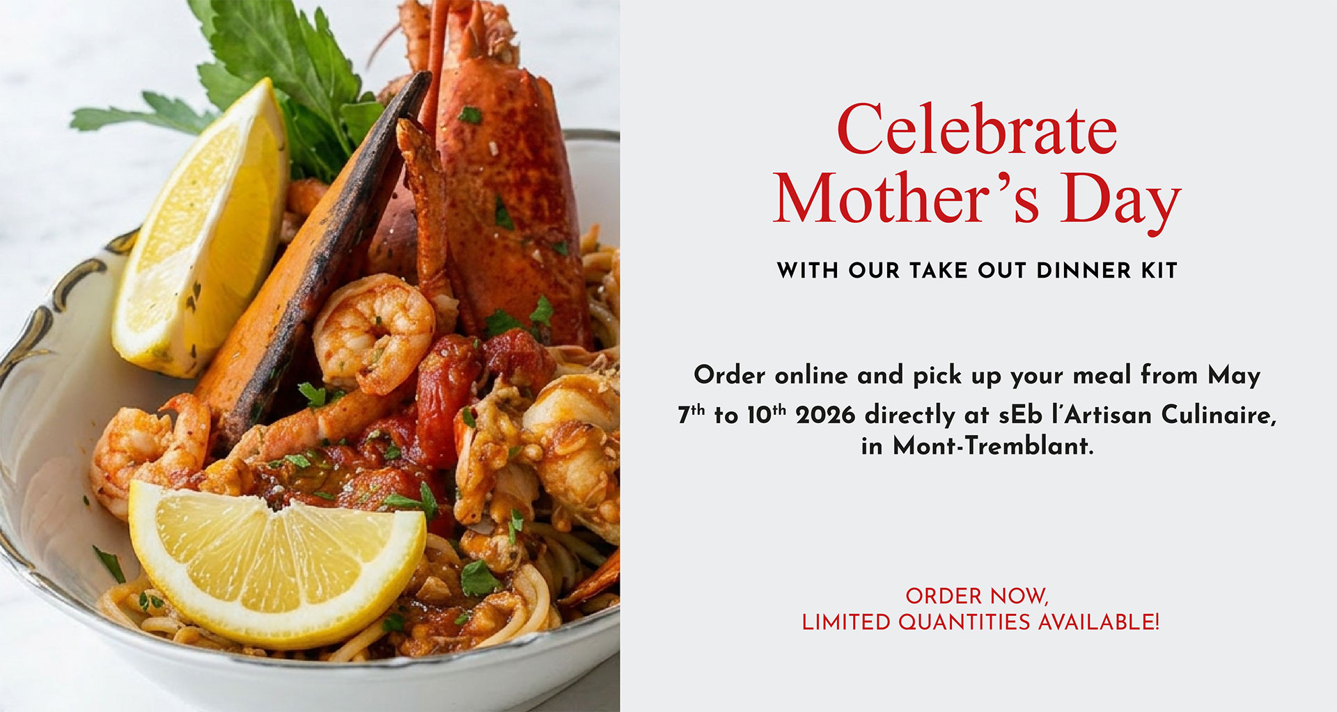 Order online for pickup between May 7th to 10th,2026 at sEb l’Artisan culinaire, in Mont‐Tremblant.